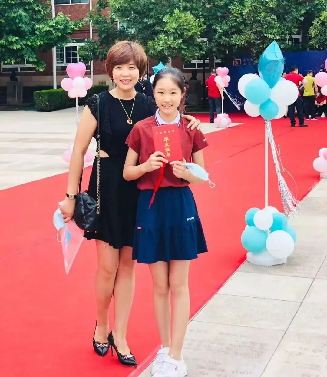 王茜梓涵小学毕业和妈妈合影留念/摄于2020年