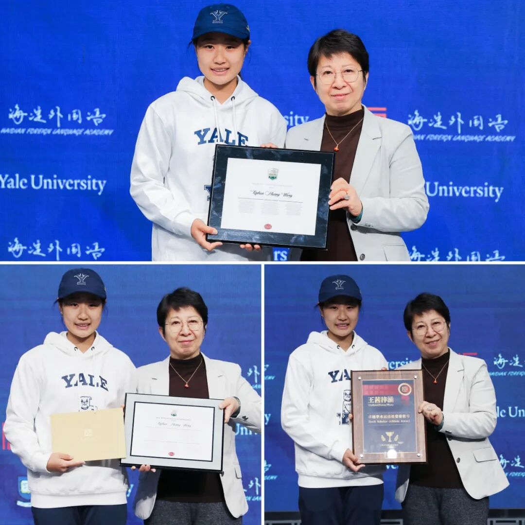 王茜梓涵自幼儿园起就在海淀外国语接受教育,13年的时光里,她一边锤炼高尔夫球技、斩获荣誉,一边深耕学业、以专注、坚持与不懈努力诠释着“优秀学生运动员”的成长路径,一步一个脚印地迈向耶鲁大学的殿堂。妹妹王茜梓霖目前就读于海淀外国语国际十年级。