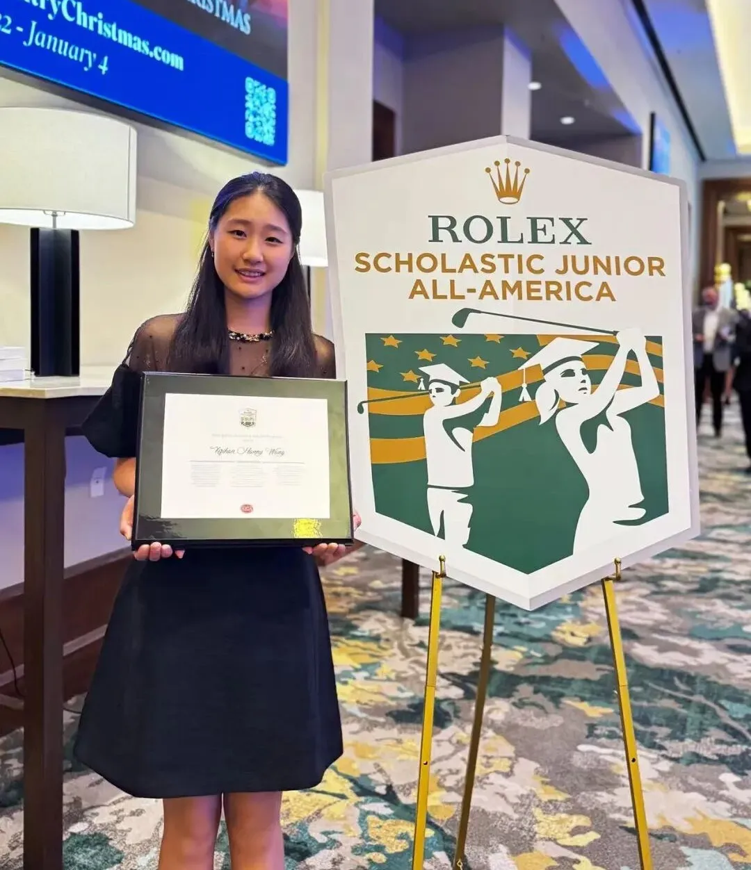 在获得“Rolex Junior All American”荣誉时,王茜梓涵起初表现得很平静。直到真正赴美国站上颁奖台,她才深深感受到这份荣誉的重量与喜悦。