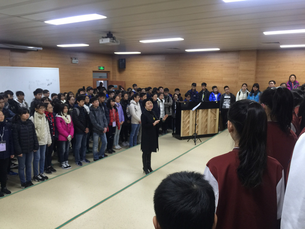 刚刚获奖的校合唱团特意为来访师生演唱了两首动听的歌曲,受到了香港师生的热烈欢迎。在集体留影后,来访的香港师生开始听课及观摩活动。