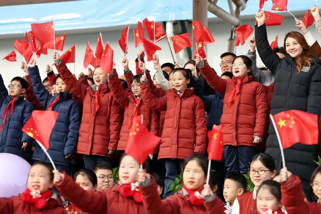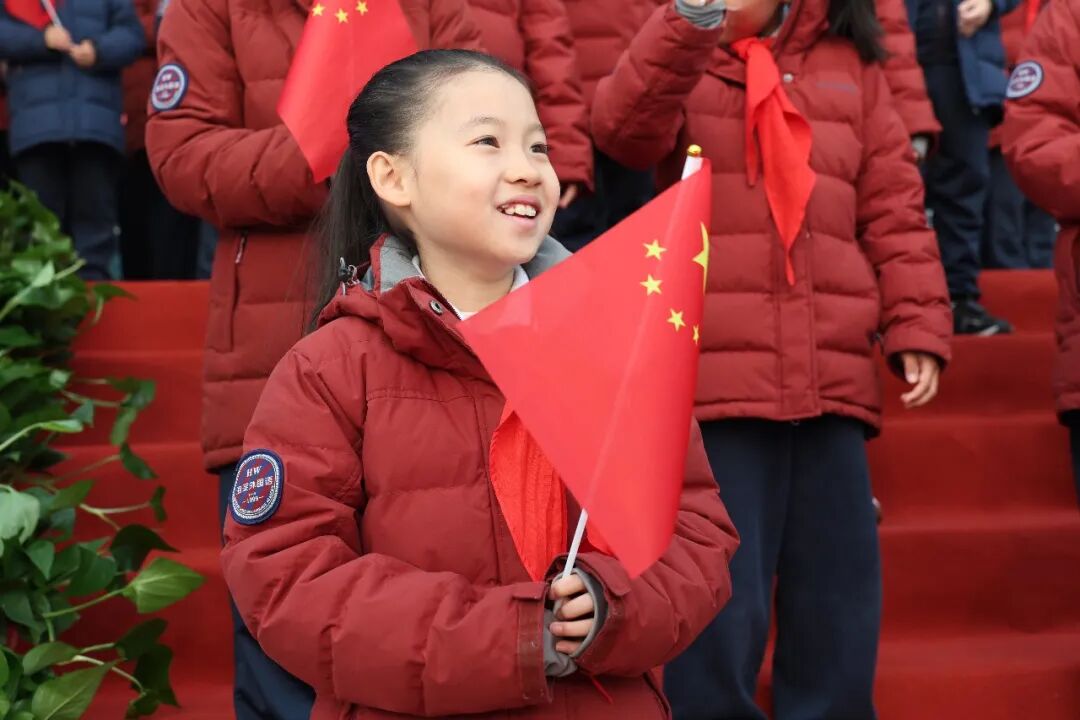 操场上的阳光洒在他们胸前的国旗上,也照进了孩子们清澈的眼眸……五星红旗冉冉升起。