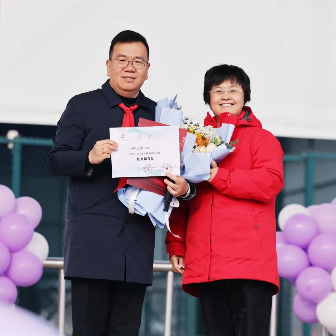 ▲黄瑞华校长为张巍先生颁发校外辅导员证书