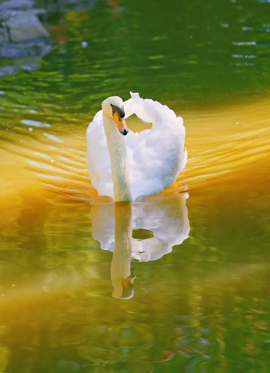 天鹅依旧优雅地在湖面画着圆