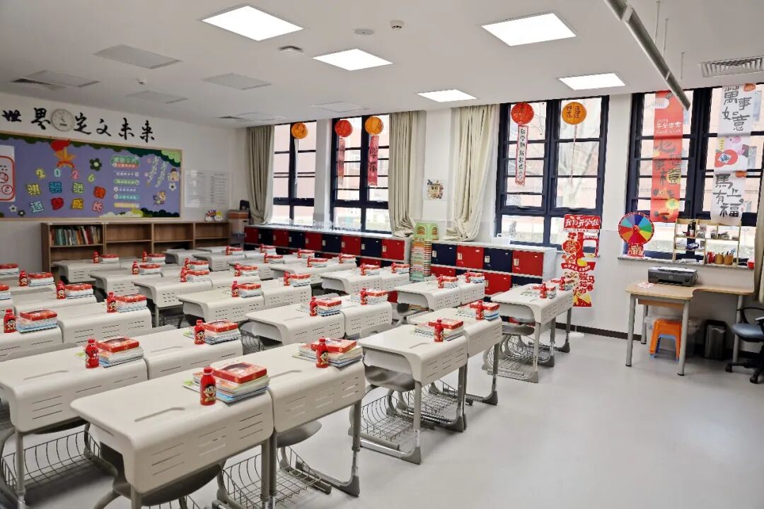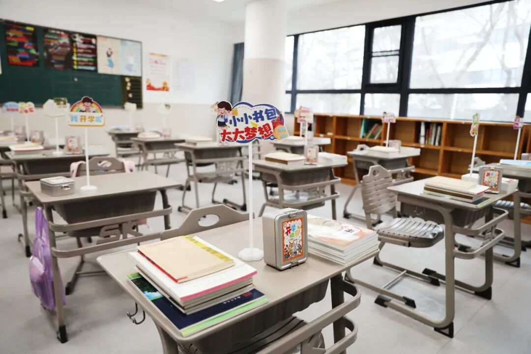 课桌上整整齐齐码着新课本