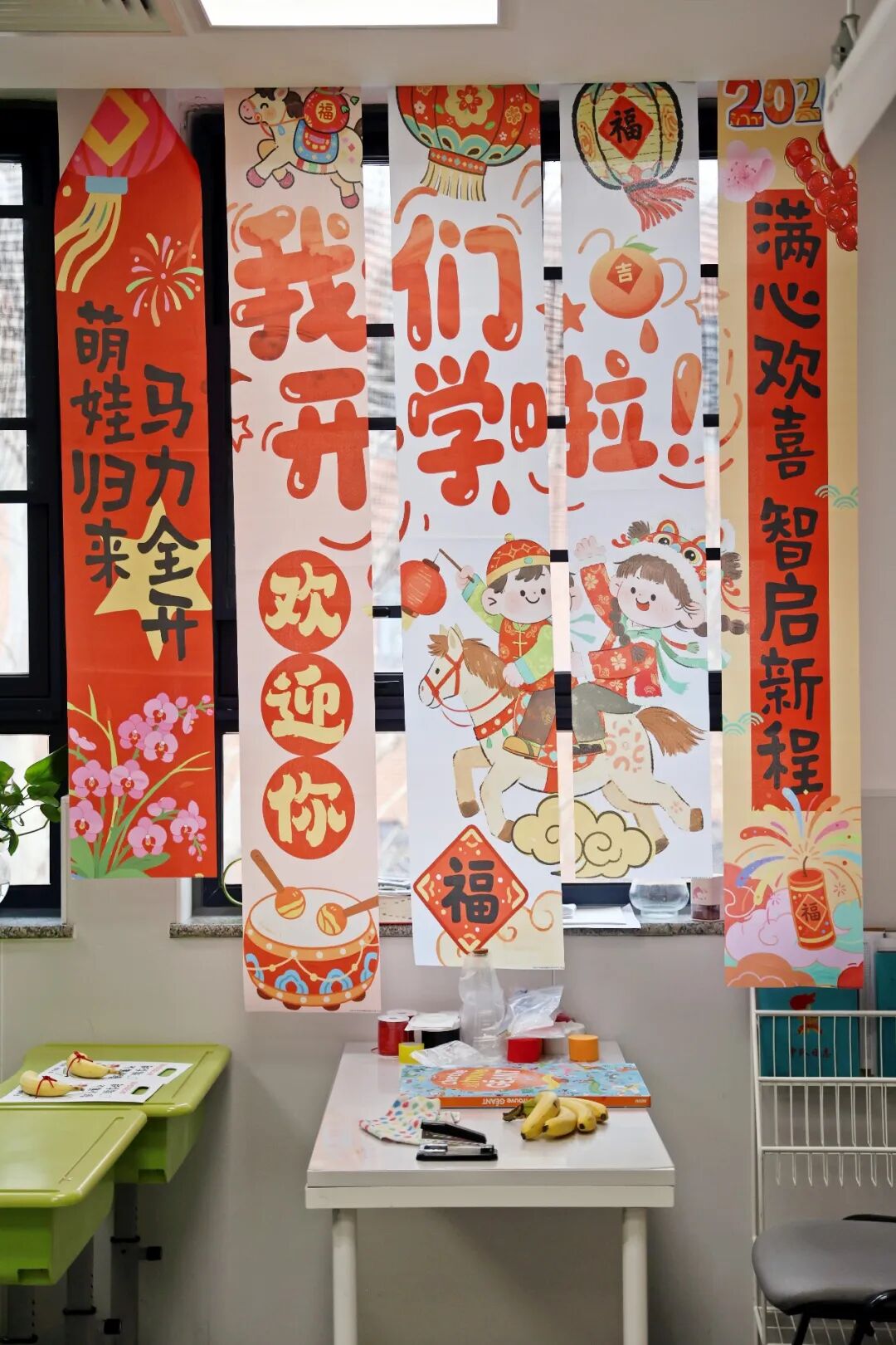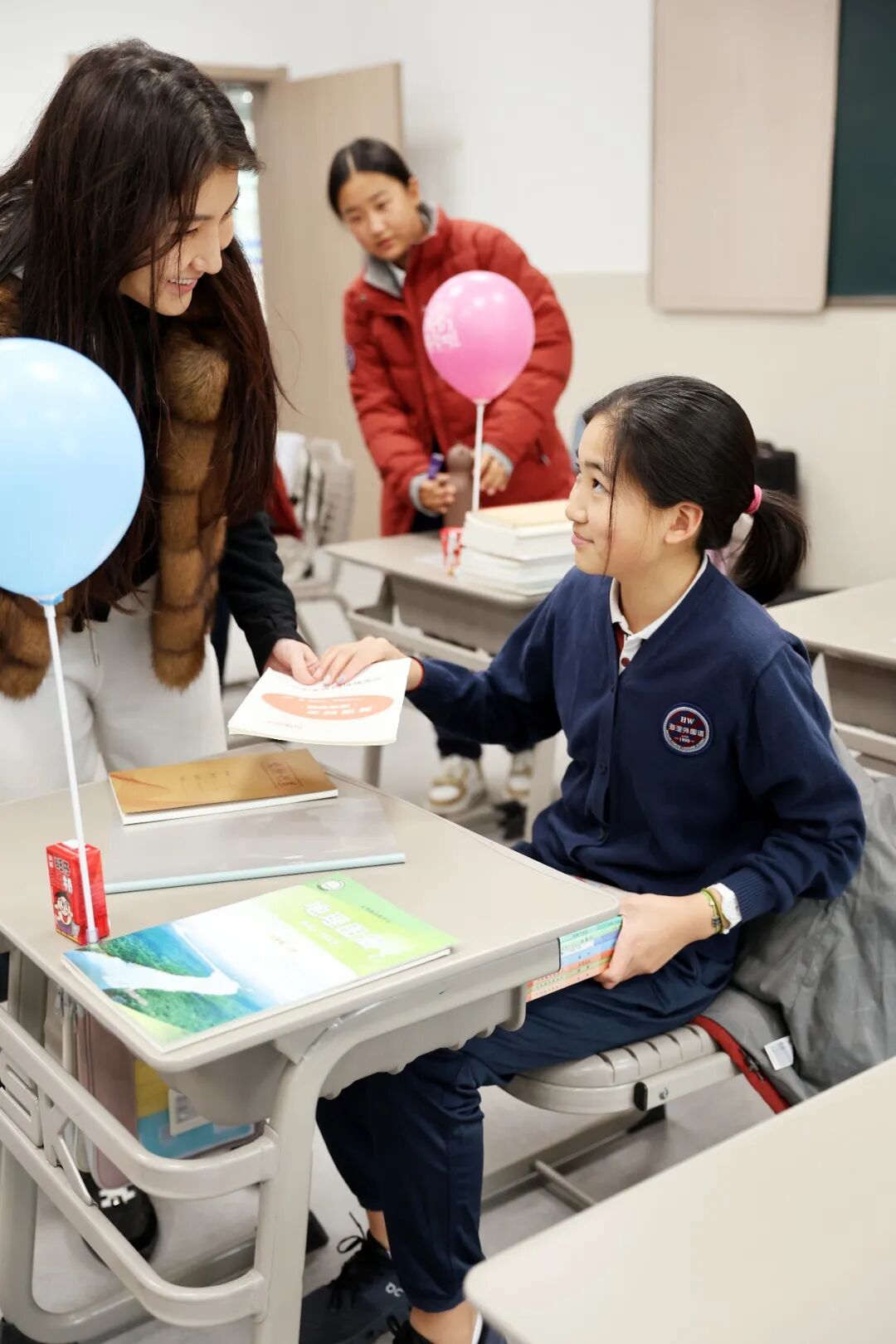 黑板上老师提前写下的欢迎语
