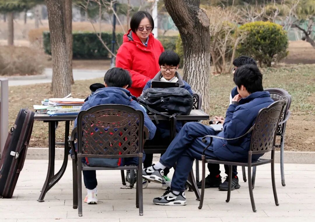校门口终于热闹起来了!