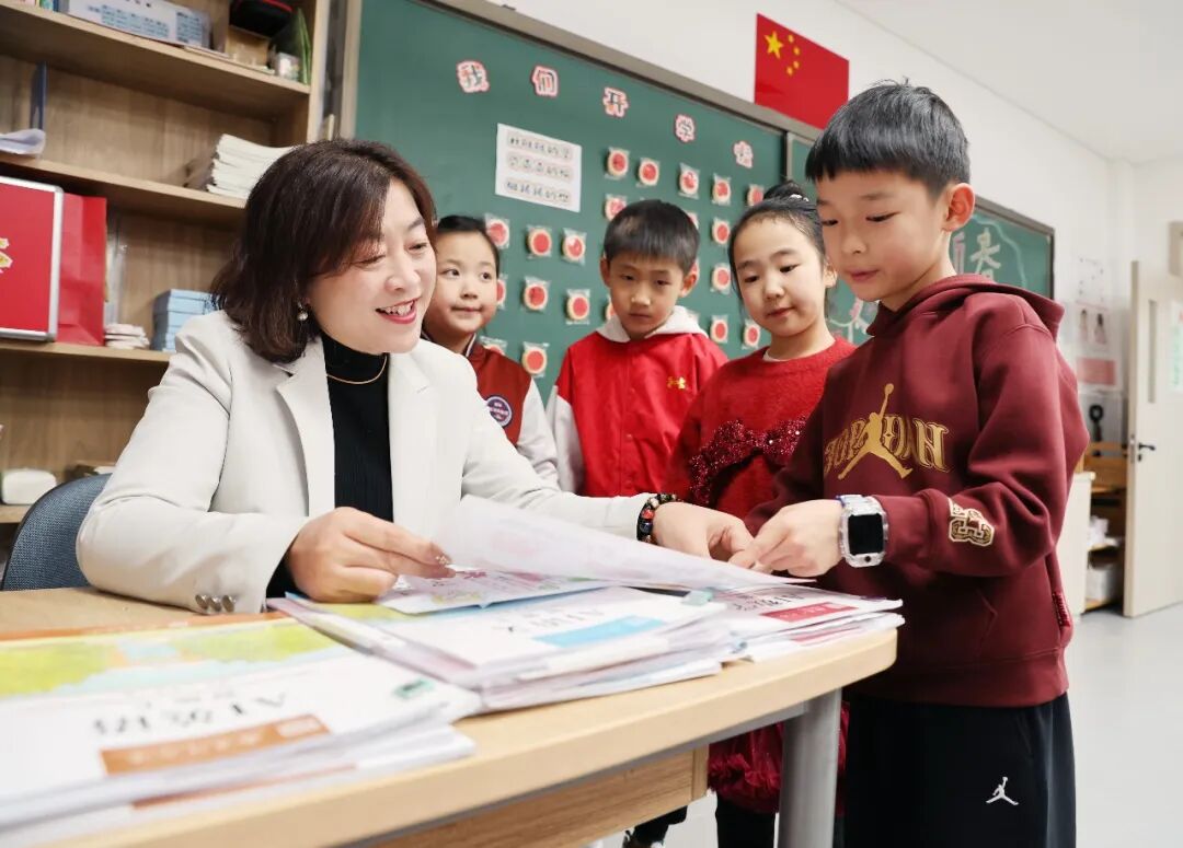 班主任一边检查着寒假作业