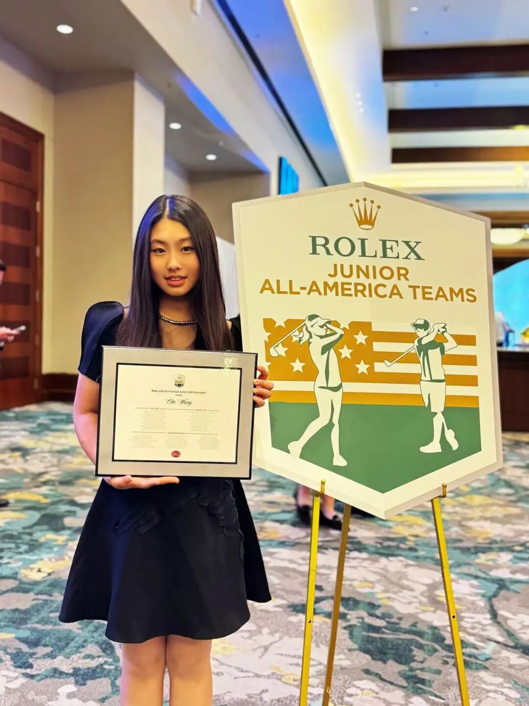 在获得“Rolex Junior All American”荣誉时,王茜梓涵起初表现得很平静。直到真正赴美国站上颁奖台,她才深深感受到这份荣誉的重量与喜悦。
