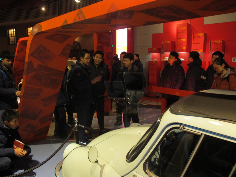 第一站汽车博物馆,学生们听我校专业机械师赵逸飞同学讲解汽车的历史发展和今日创新设计,还有学生兴致勃勃的操控模拟内燃机。在汽车博物馆学生们感受最深的是以下一点:科技创新,务实精神。 学生们参观车展对欧美、日韩汽车品牌肃然起敬。德国的奔驰宝马将产品质量和乘坐舒适度做到极致;美国的福特公司利用流水线作业来降低汽车生产成本,从此汽车从顶级奢侈品演变成代步工具;日韩因油料奇缺,生产的汽车如本田、丰田、现代、起亚等系列自然以经济节能而闻名。参观后孩子们讨论最多的就是各民族的科技创新能力和务实精神。