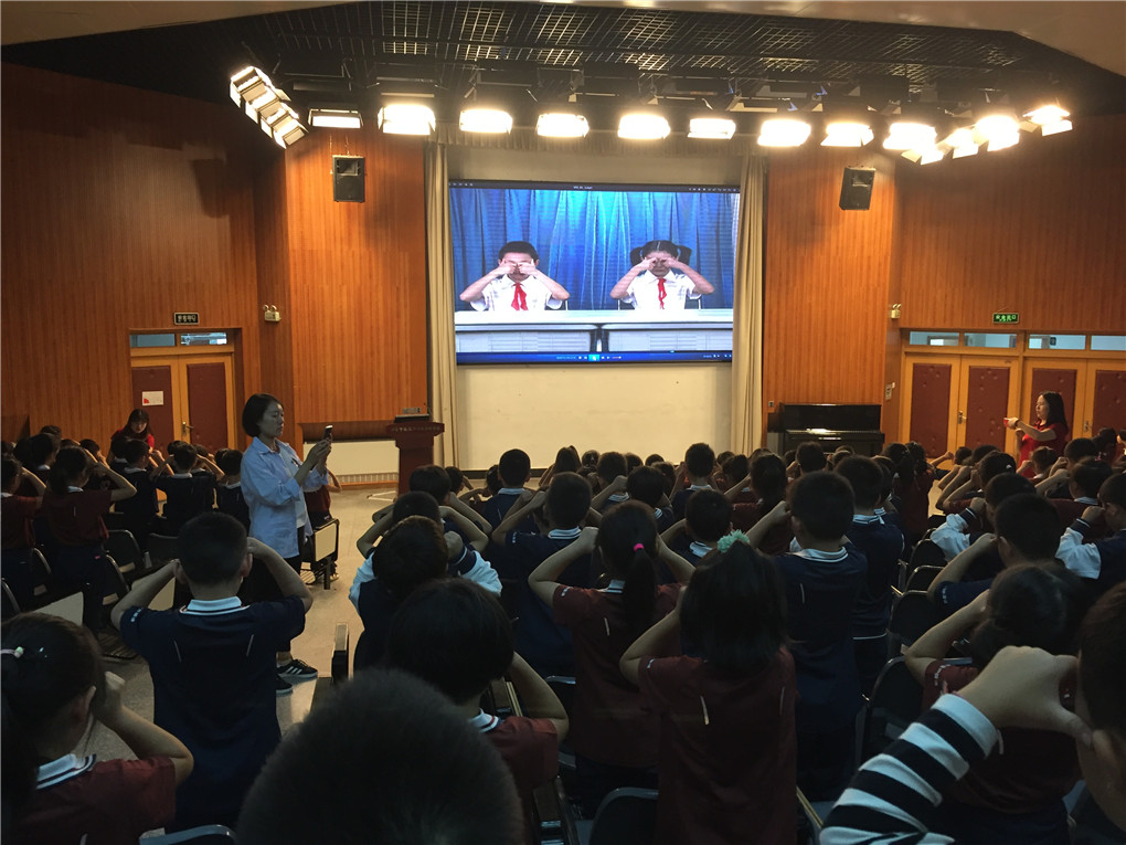 最后随着眼保健操音乐口令的播放,全体同学整齐地展示了一遍眼保健操,穴位和动作有待进一步准确、规范。