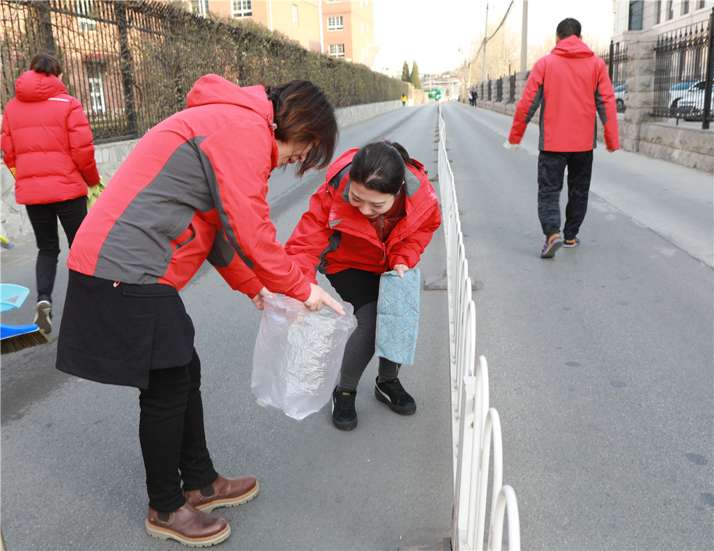 上午8:30分,党员们准时来到主楼前,在党总支副书记常玉民主任的带领下分头进行活动。大家兵分几路,分别对文化广场、校园绿化带,以及校门口南北和东西道路进行清扫,党员们有的拿着垃圾袋捡拾垃圾,有的拿起扫帚清扫路面,有的对绿化带内的树枝、落叶进行彻底的清理。经过党员们一双双手的辛勤劳动,整个校园和周边环境焕然一新,最后大家胜利会师主楼前合影留念。