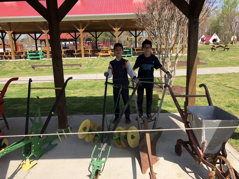 除此以外,学生们还参观了农场使用的各种耕种工具,了解过去的美国农民如何耕种,农民的生活状态。结伴去参与农家生活娱乐项目,过程中互相合作,更加深了感情。