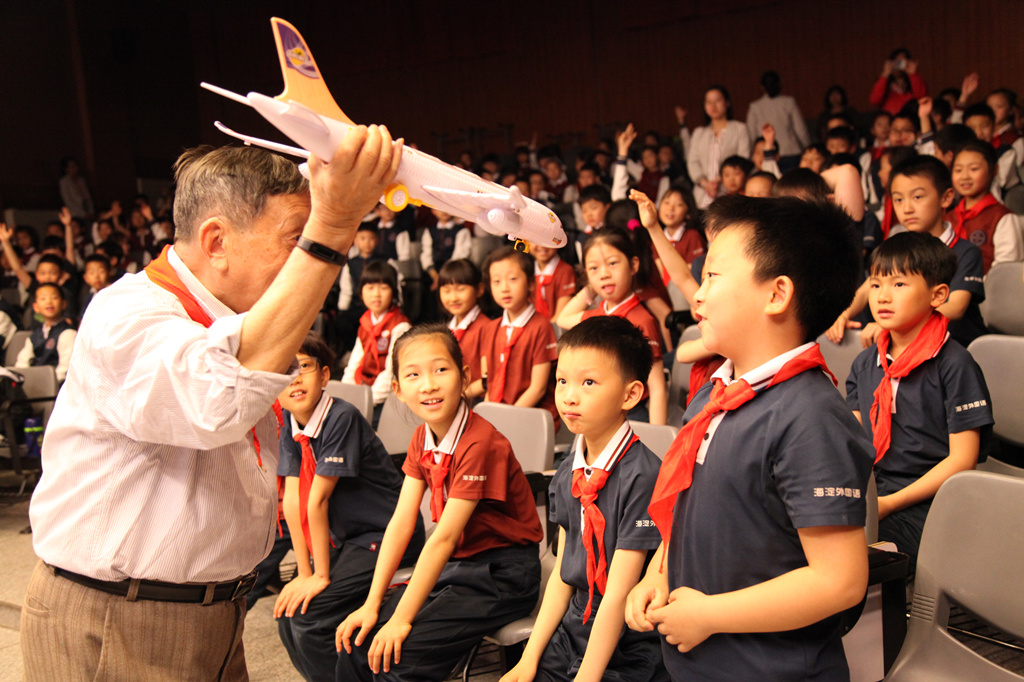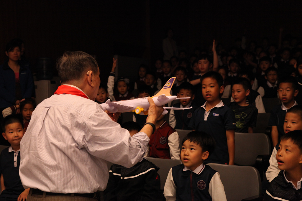 4月27日,北京航空航天学会顾问陈光爷爷来到我校,为1—3年级的同学们带来了一场别开生面的科学报告,点燃了同学们心中的航天梦。