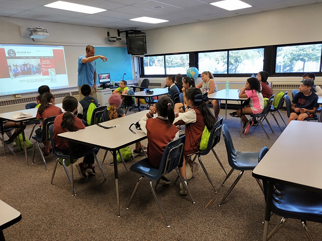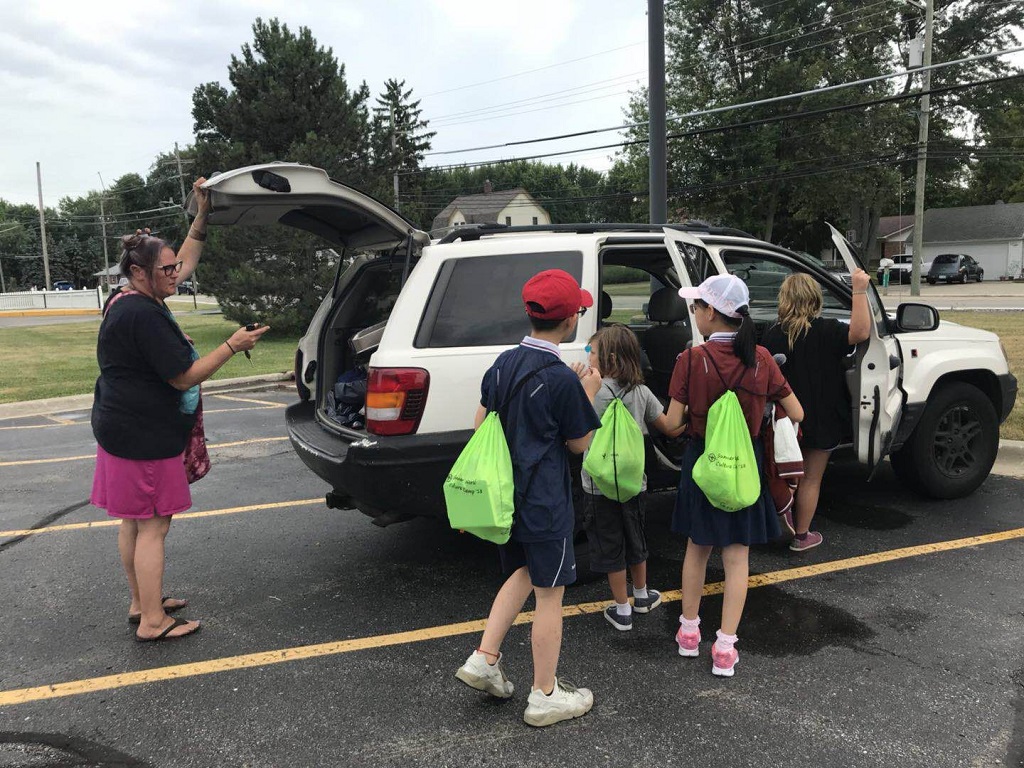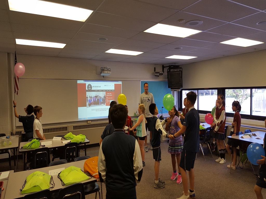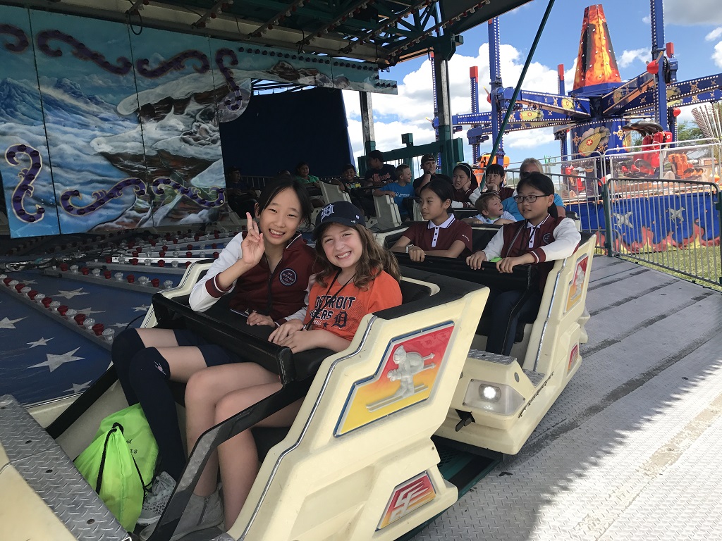 我们来到了位于底特律的Anchor Bay School,蓝天、白云、绿树、青草地,清新的空气让我们心旷神怡;散落在大片绿草坪上的各种活动设施,让我们激动、欢呼!