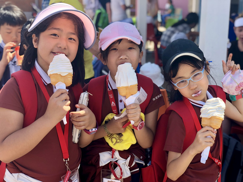 “left, right, left, right, turn around, ye…”悬着的心还未着地,欢快的节奏,热情的舞蹈就把我们吸引过去啦!哇!原来是表演开始了,舔着美味的冰淇淋,开始欣赏吧!