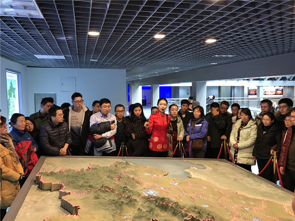 之后,大家参观了再现1949年老北京风貌的《北京旧城》浮雕,浮雕刻在3楼和4楼中间的一面墙上,充满里年代感和历史感。工作人员为大家讲解了老北京的城市规划,让那个时代重现在大家眼前。之后参观北京古城的变迁展区。展区用电子画卷的形式介绍了上世纪三、四十年代,南起永定门北至钟鼓楼,7.8公里长的老北京城的故事。最后,全体人员参观了北京的全程微缩模型和京津冀现代城市规划蓝图,感受到了北京市全城缩微模型和未来整体规划蓝图带来的震撼与鼓舞。