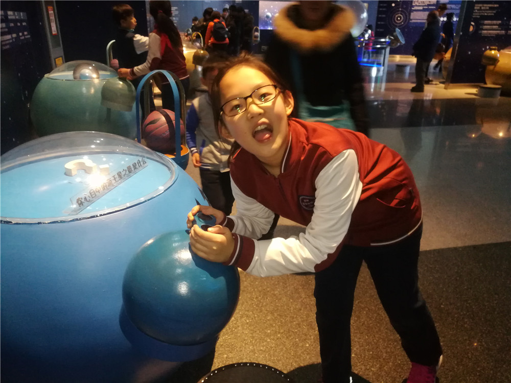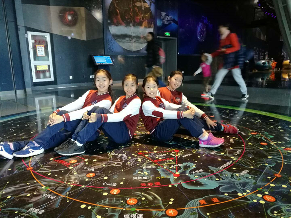 来到天文馆,深奥的天文知识吸引着孩子们。同学们在老师的带领下,参观了A馆天象厅中蔡司九型光学天象仪,以及世界上分辨率最高的全天域数字投影系统,该仪器逼真还原地球上肉眼可见的9000余颗恒星,同学们在虚拟天象演示中畅游,参观了三维宇宙空间模拟实验等项目。各班同学还在老师的带领下,观看了宇宙剧场、4D剧场、3D剧场这三个科普剧场的电影,同时还参观了天文展厅、太阳观测台、大众天文台、天文教室等各类科普设施,孩子们学到了很多天体知识,这些知识为孩子们探索宇宙天体打开了一扇大门,引领着孩子们在知识中遨游。