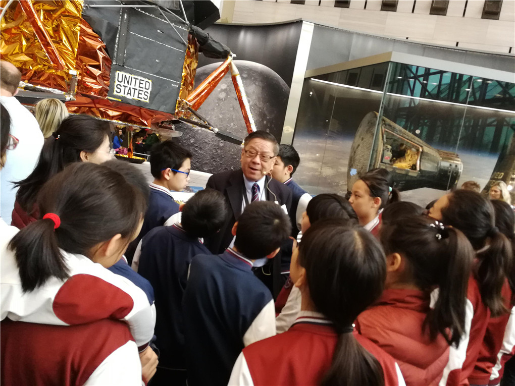 随后孩子们来到了美国国健航空航天博物馆,博物馆拥有24个展厅,展馆面积达到1.8万平方米,是史密森会创建的众多博物馆之一,也是全世界首屈一指的有关飞行的专题博物馆。在这里各场馆陈列着飞行史上具有重要意义的各类飞机、火箭、导弹、宇宙飞船及著名飞行员、宇航员用过的器物。