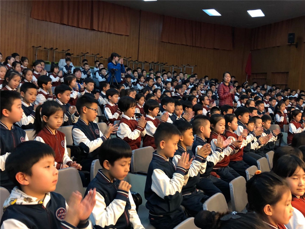 接着,会场上奏响了嘹亮的中国少年先锋队队歌,让学生们加入少先队的热情更加高涨。伴随着振奋人心的歌声,王老师宣布“百星争当少先队员”的活动正式启动,王老师从尊敬师长、团结有爱、专心听讲、积极锻炼等十个个方面给同学们详细讲解了百星争章的规则。同学们用端正的坐姿,响亮的口号,向老师们表达了自己的决心。最后,左主任和曾老师也为他们鼓劲加油,并提出对同学们的殷切期望。